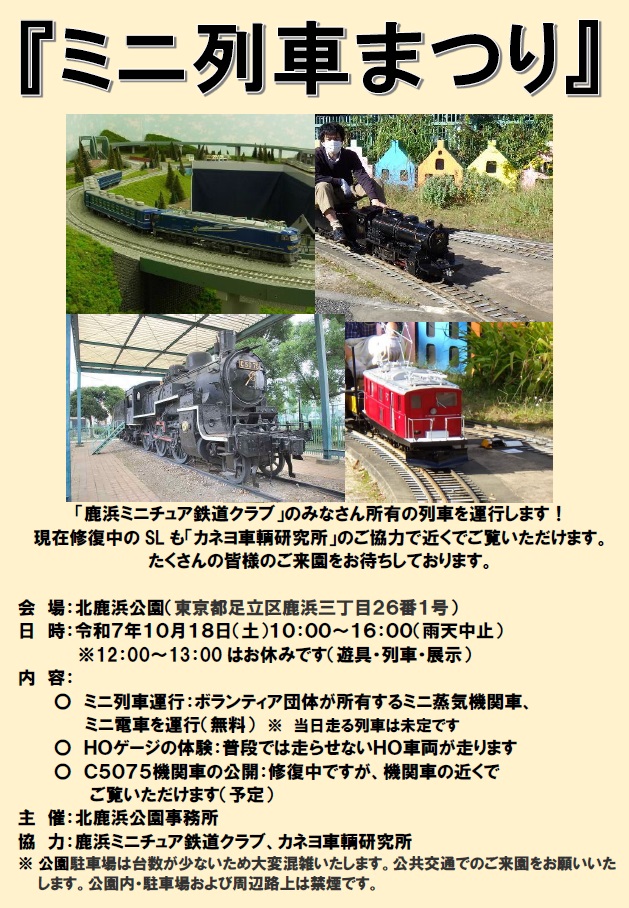 ミニ列車まつり 2025/10/18(土)2025年10月15日更新