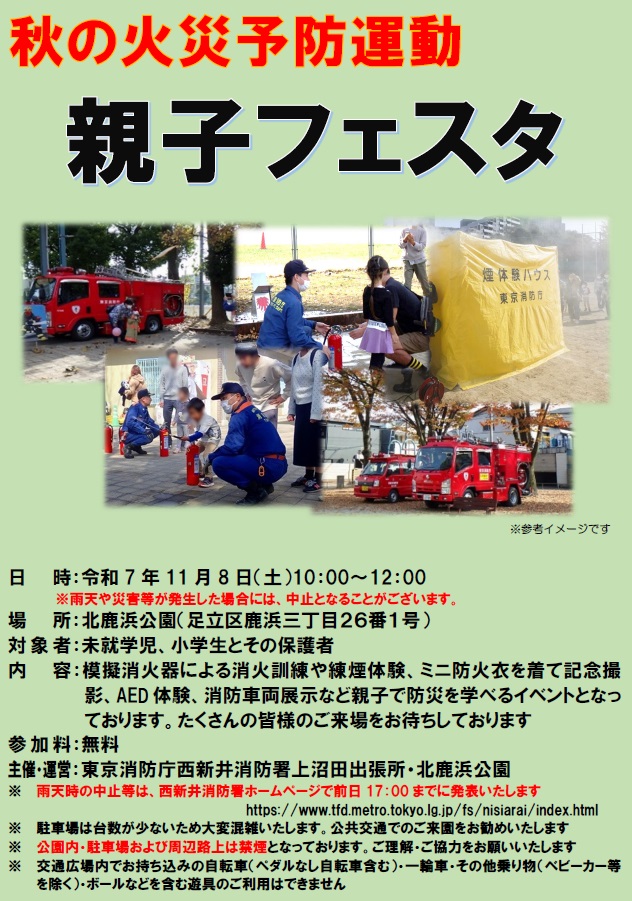 ※ 雨天時の中止等は、西新井消防署ホームページで11月7日(金)17:00までに発表いたします